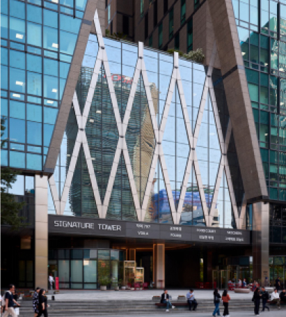 시그니쳐타워는 서울특별시 중구에 위치한 초대형 프라임 오피스 빌딩으로 Core CBD인 청계천변에 위치해 있습니다.