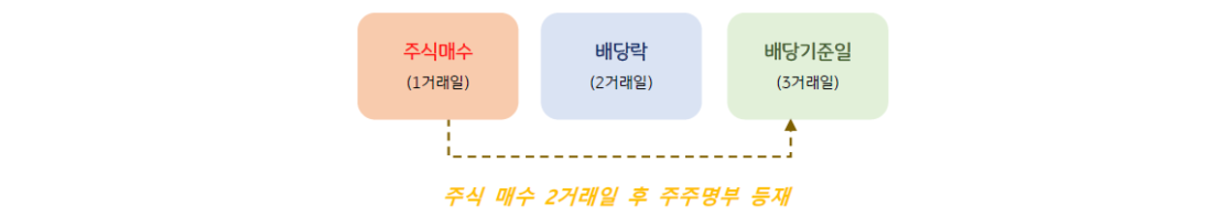 - 주주명부에 신규로 등재되기 위해서는 매매대금의 결제일을 감안하여 배당기준일로부터 2거래일 전까지(공휴일 제외) 신규 매수를 하여야 합니다.