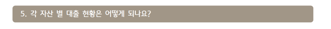 각 자산 별 대출 현황은 어떻게 되나요?