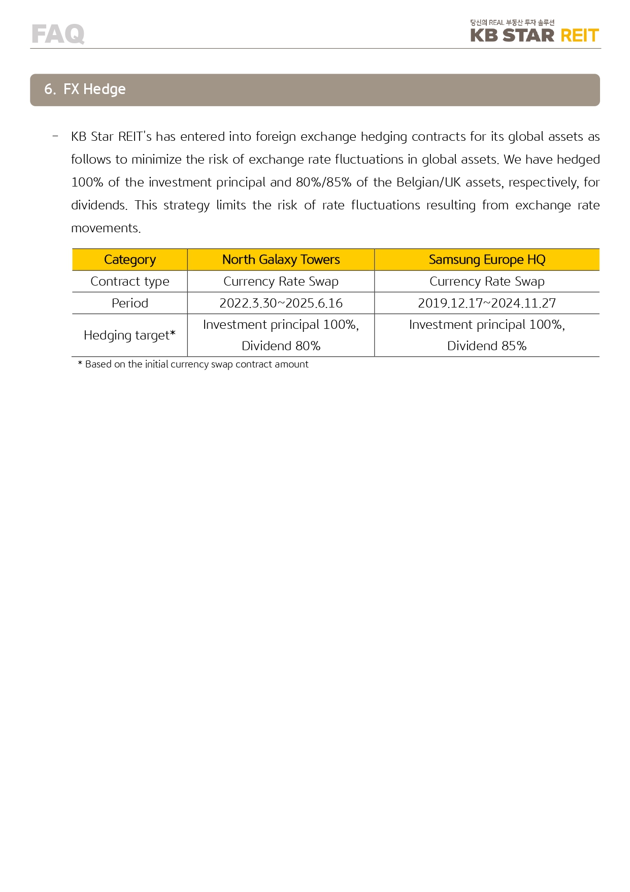 All Menu KR EN Company About KB STAR REIT Highlights Strategy Portfolio North Galaxy Towers Samsung Europe HQ Citibank Center Disclosure Stock Information Disclosure Notice/IR Library FAQ FAQ All Menu Close